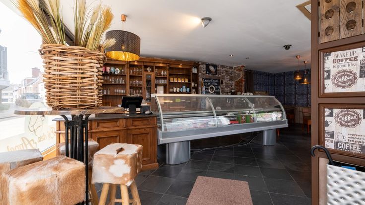 - Gelijkvloers: winkelruimte, frigo ruimte, keuken, bijkeuken , hal en toilet