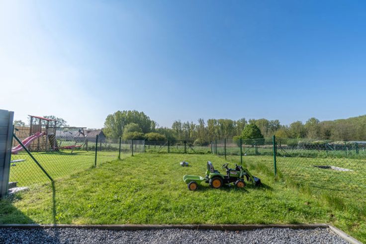 *** OPTION - DANS L'ATTENTE DE LA SIGNATURE DU COMPROMIS *** TRIOR vous propose cette jolie construction de 2021 développant une surface habitable de 135m² sur une parcelle de terrain de 1a90ca (SUD). Située dans un quartier résidentiel calme avec vue dégagée sur la verdure, elle se compose d'un hall d'entrée avec toilette visiteurs, un lumineux séjour de 30,50m² avec baie vitrée s'ouvrant sur la terrasse et le jardin, une cuisine américaine équipée et une arrière cuisine avec buanderie. A l'étage, le hall de nuit dessert 3 belles chambres (14 - 13,60 et 10m²) et une salle de douche carrelée. DIVERS : système VMC (simple flux), PVC double vitrage (aération intégrée), chauffage central au gaz (propane - citerne enterrée), compteur bi-horaire/installation conforme, citerne d'eau de pluie, système d'alarme, adoucisseur d'eau, etc... PEB B. VENTE SOUS REGIME TVA (21%). Très belle opportunité! Descriptif complet sur www.TRIOR.be