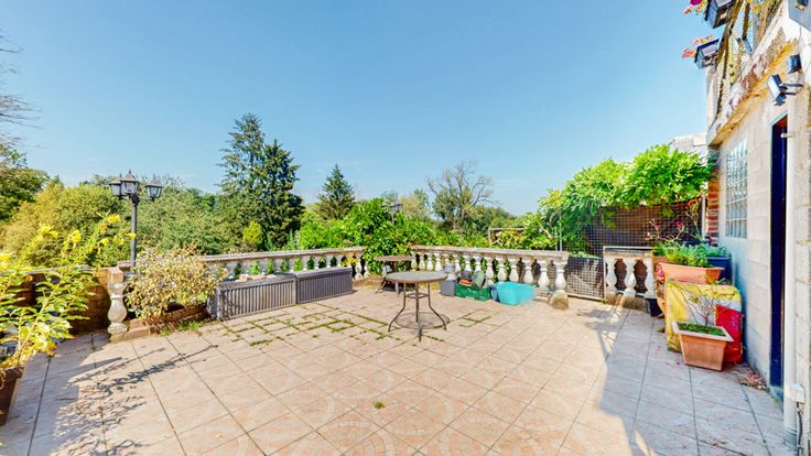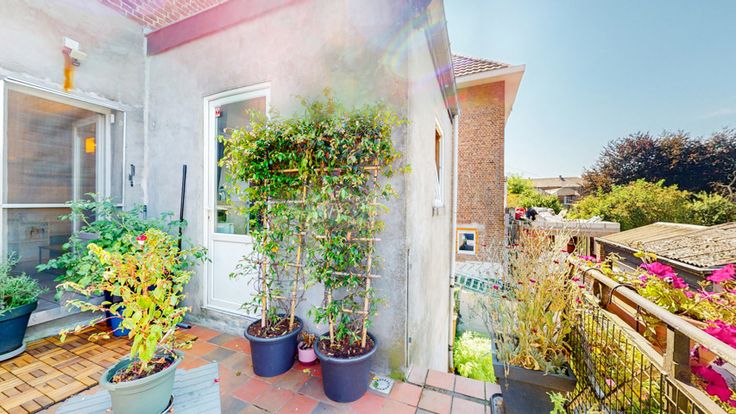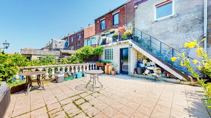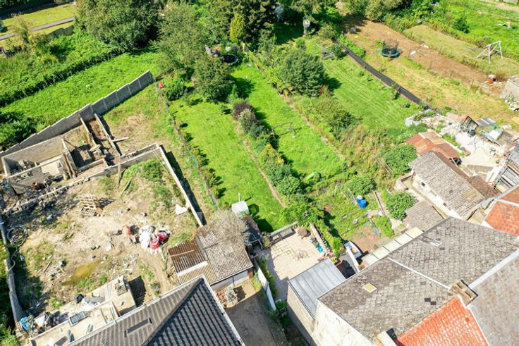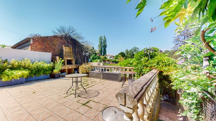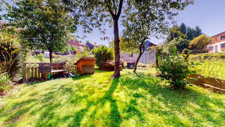 Un beau jardin avec abri et une grande terrasse à hauteur du RDC.