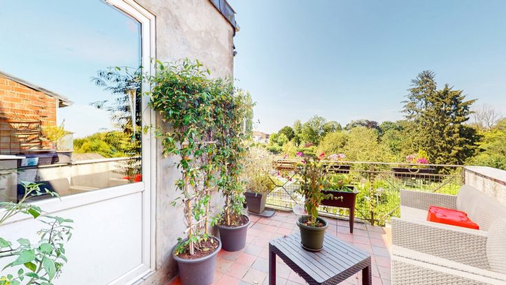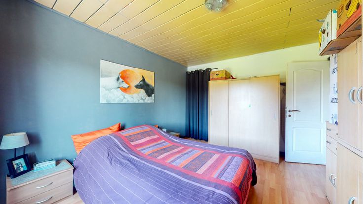 3 chambres (14m2, 11m2 et 10m2) dont une passante et une donnant au grenier ainsi qu'une salle de bain avec WC et baignoire (6m2)
