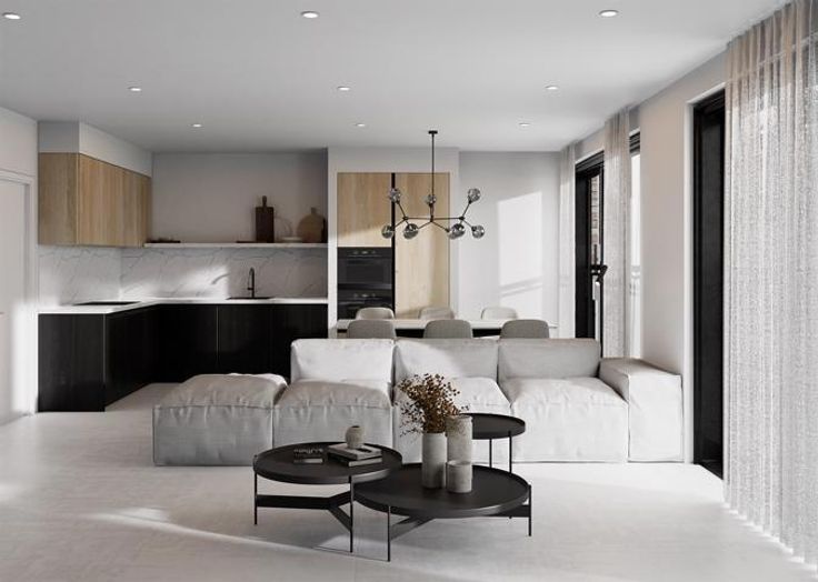 Wij bouwen hier 3 BEN-appartementen (= Bijna Energie Neutraal) met elk 2 slaapkamers en een ruim zonneterras. Achteraan in de tuin een tuinberging voor fietsen en afval alsook 5 openlucht autostaanplaatsen. Geschat E-peil
