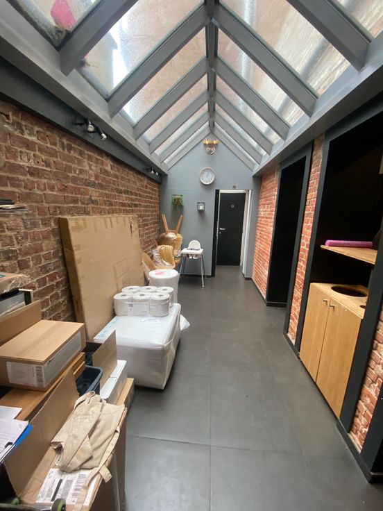 Commerce de +/_ 140m2 composé d’une salle au rez de 80m2, une cuisine avec hotte à l’arrière de 16m2 et une grande cave de 40m2.