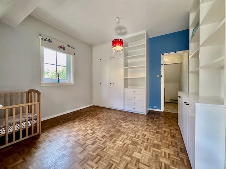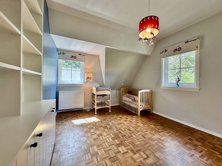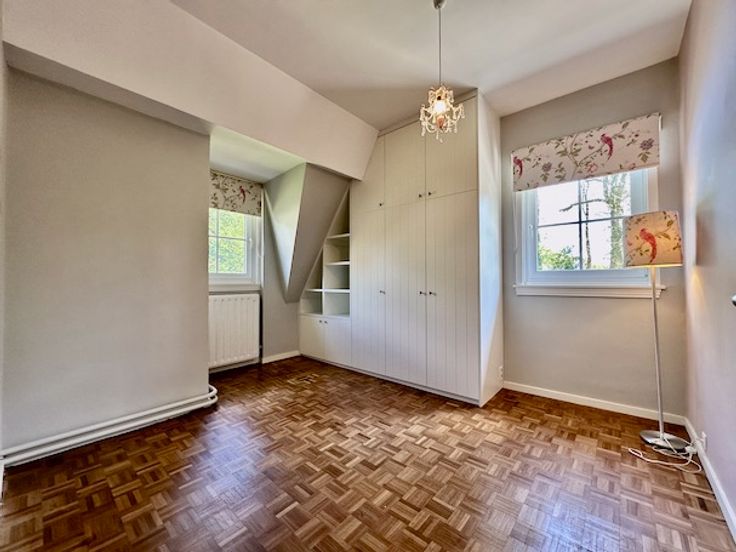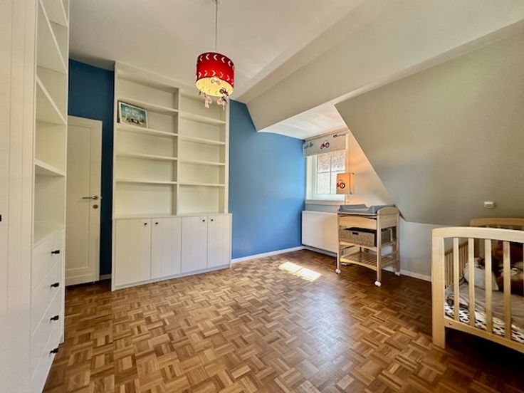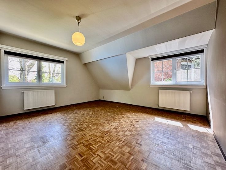 Op de 1e verdieping zijn er 3 ruime slaapkamers (op parket) van 16,5 m², 12,5 m² en 23,5 m² + een kleine bureelruimte van 4 m².