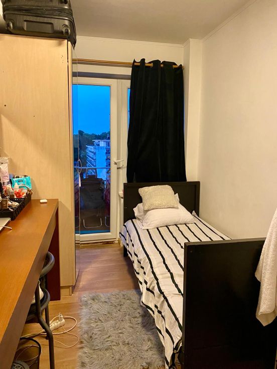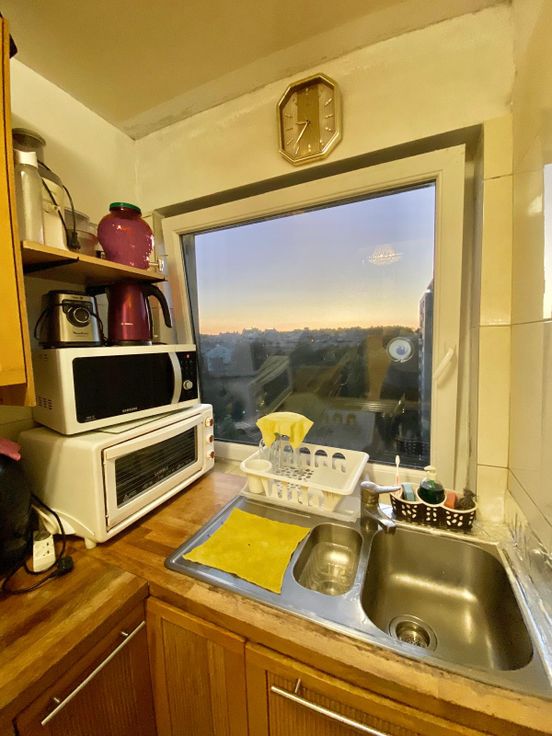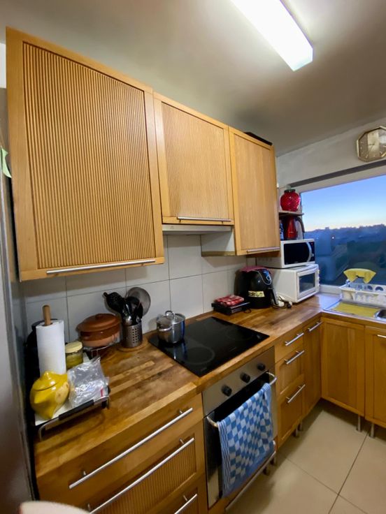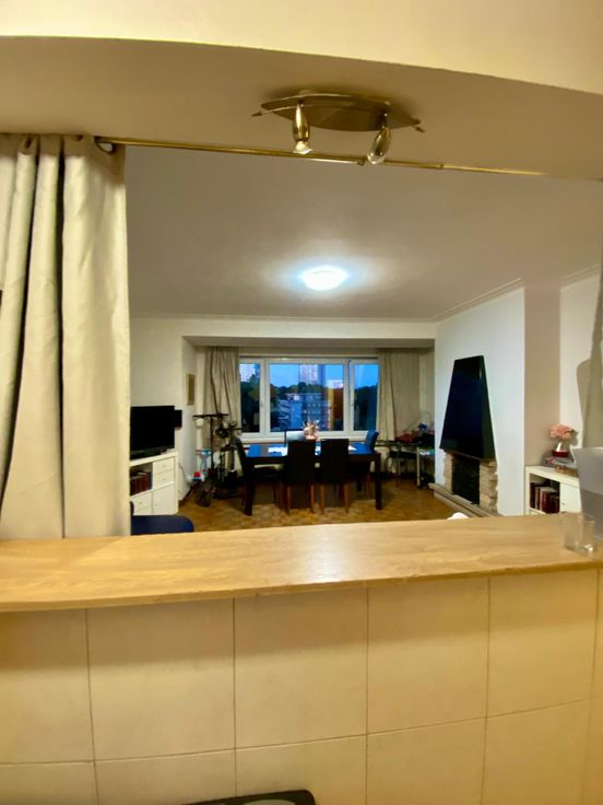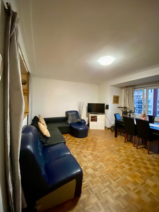 Jolie appartement dans un immeuble de 9 étage avec place de parking devant l'immeuble Appartement au 6eme avec 2 chambres WC et douche séparée et petite pièce rangement cuisine équipée et cave privé libre pour début octobre