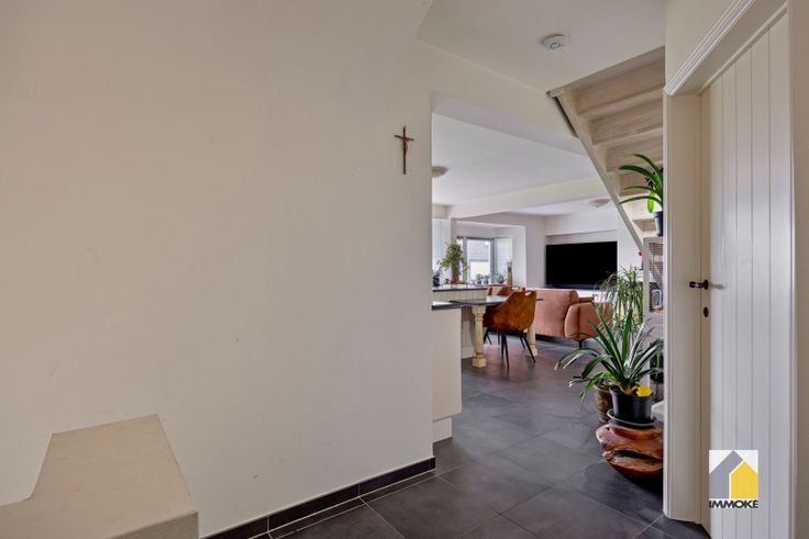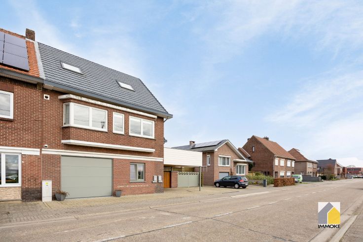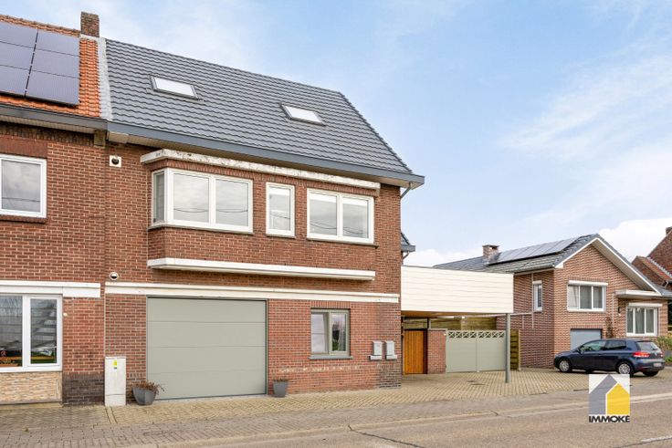 - GELIJKVLOERS: Autostaanplaats onder de carport, private ingang met overdekte buitenberging. Inkomdeur van het appartement, met trap naar de verdieping.