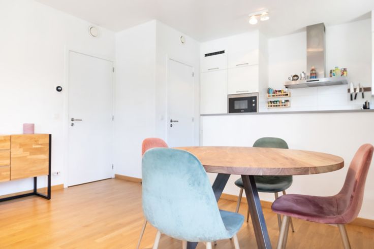 UKKEL, tegenover Parc de la Sauvagère en het Lycée Français - Om te wonen of te investeren - L'Orangeraie is een kans om een prachtig stukje hedendaagse architectuur te grijpen dat in 2017 is voltooid. Wij presenteren specifiek dit lichte appartement met ± 90m² woonoppervlakte, bestaande uit een woonkamer met open keuken en toegang tot het terras, 2 grote slaapkamers, 1 badkamer met apart toilet, wasruimte en 1 overdekte privéparkeerplaats! B- EPB, elektriciteit volgens de voorschriften, double-flow ventilatie en ingebouwde kasten maken de essentiële kenmerken compleet. Momenteel verhuurd voor €1150/maand onder een 3-jarig huurcontract getekend in 2022. Afmetingen ter informatie