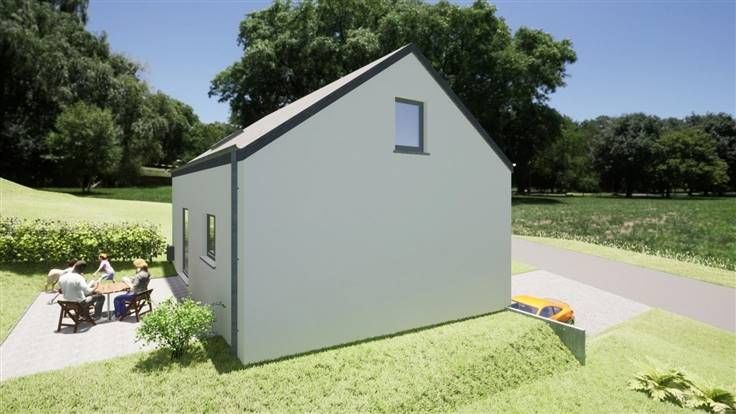 C'est à Saint-Mard que nous vous proposons ce projet de maison. La bâtisse se compose au sous-sol d'un hall, d'un garage et d'une buanderie. Au rez, d'un hall d'entrée, d'un WC, un séjour, une cuisine, une chambre et une salle de douche. L'étage quant à lui est composé d'un hall de nuit, 2 chambres, un espace bureau et une salle de bain (bain, WC et meuble lavabo).