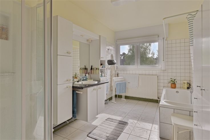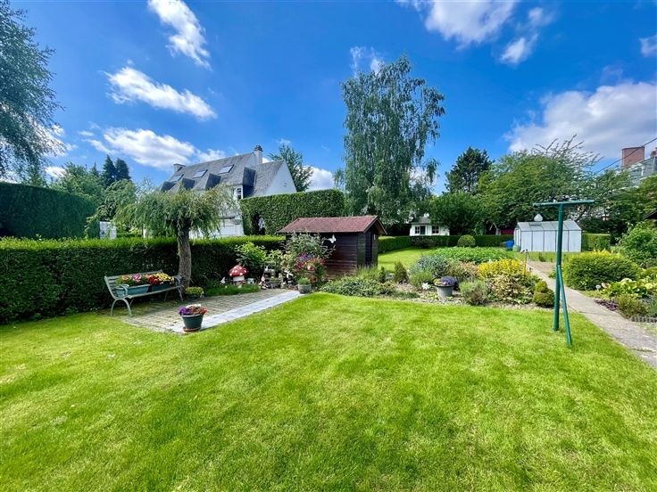 Ontdek deze karaktervolle villa, gebouwd in 1973 en prachtig gelegen op de gerenommeerde Renbaanlaan in Wezembeek-Oppem. Met zijn residentiële en exclusieve ligging op een swing van de "National Golf Brussels", nabij de gezellige dorpskern van Sterrebeek, biedt deze woning het beste van beide werelden: rust en toch alle belangrijke verbindingswegen naar Leuven en Brussel binnen handbereik. Bovendien bevindt u zich op een boogscheut van het adembenemende Warandepark van Tervuren en het uitgestrekte Zoniënwoud. Dit uniek eigendom, gebouwd op een royaal perceel van 9a 55ca, verwelkomt u met een netto bewoonbare oppervlakte van maar liefst 220 m², verdeeld over twee niveaus. Op het gelijkvloers betreedt u een uitnodigende inkomhal met gastentoilet, gevolgd door een sfeervolle woon- en eetkamer met open haard. De volledig ingerichte aparte keuken biedt toegang tot het zonnige terras met een rustgevend uitzicht op de diepe aangelegde parktuin met tuinhuis en serre, georiënteerd naar het zuidwesten. Ook treft u hier een inpandige garage met sectionale poort aan, die tevens dienst kan doen als atelier. Op de eerste verdieping bevindt zich een ruime nachthal met inbouwkasten, drie master-slaapkamers van elk 19 m², een bureau of polyvalente ruimte, en een badkamer met ligbad, douche, wastafelmeubel en tweede toilet. De villa beschikt tevens over een deels onderkelderde ruimte, klaar om naar eigen smaak te worden ingericht.