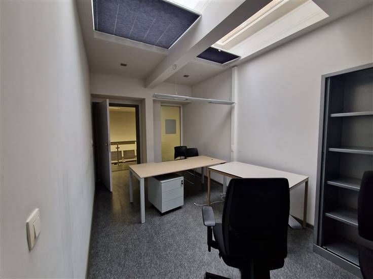 De beschikbare unit heeft ongeveer 350 m² bruikbare oppervlakte. Met zijn verschillende aparte ruimtes, waaronder 1 centrale grote ruimte en verschillende aparte afgesloten bureauruimtes omliggend.
