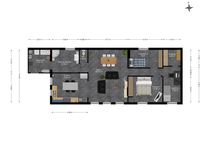 +++ VISITES UNIQUEMENT AU 0470/34.87.93 +++ PLUS D'INFOS SUR WWW.DECA-IMMOBILIER.BE - REFERENCE DU BIEN : 1992 - Découvrez cette charmante maison de plain-pied, conçue pour offrir un style de vie facile et pratique, à proximité de toutes les commodités. Dès l'entrée, vous serez accueilli par un séjour lumineux harmonieusement intégré à une cuisine équipée moderne et ouverte. L'aile gauche de la maison abrite une salle de bains, une buanderie ainsi que des toilettes séparées, assurant ainsi votre confort au quotidien. À l'aile droite, un hall de nuit dessert trois chambres confortables et un dressing, offrant un espace dédié à la détente et au rangement. De plus, les combles aménageables vous offrent un potentiel supplémentaire pour personnaliser cet espace selon vos besoins. À l'extérieur, une vaste terrasse s'ouvre sur un jardin privé, créant ainsi votre propre coin de paradis pour profiter de moments de détente en plein air. Cette propriété offre un équilibre parfait entre fonctionnalité et confort, prête à vous accueillir - PEB : D - n° 20240301013211 - 258 Kwh/m².an -33.703 Kwh/an - FAIRE OFFRE A PARTIR DE 229.000 Euros sous réserve d’acceptation des vendeurs - RC : 550 Euros - VISITES REALISABLES UNIQUEMENT SUR RDV AU 0470/34.87.93