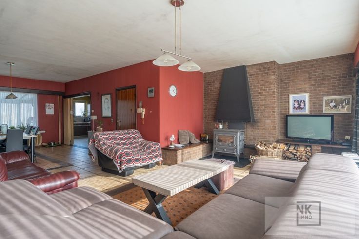Op de eerste verdieping is er de ruime living en eetkamer met houtkachel.