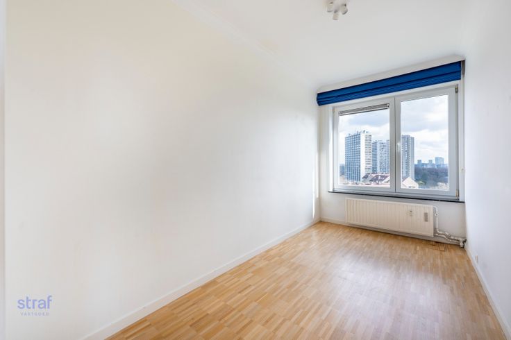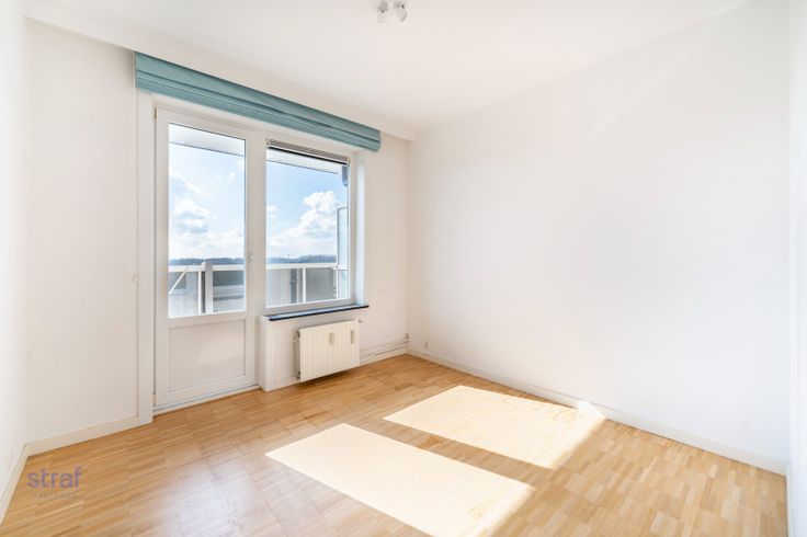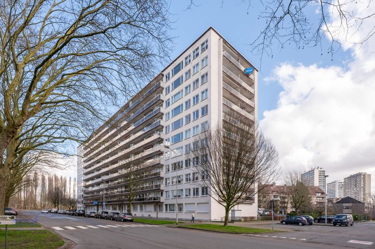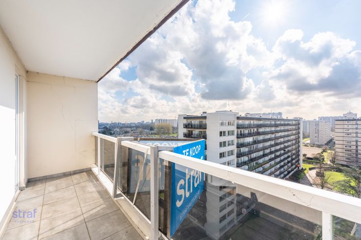Neem je de lift naar de tiende verdieping van dit appartementsgebouw, dan zit je bijna met je hoofd tussen (en in) de wolken. Aan de ene kant heb je zicht over héél Linkeroever. Vanuit de woonkamer heb je een adembenemend uitzicht over de Antwerpse skyline, met onder andere het MAS en de kathedraal.  Dit appartement werd recent gerenoveerd. Je krijgt hier drie slaapkamers en veel ingemaakte kasten - de droom van rommelige types, want daar krijg je dus àlles in kwijt. Door de grote ramen in de woonkamer en open keuken valt ontzettend veel daglicht. Er is 1 kleiner terras aan de keuken en 1 groot zuidterras met zicht over het stad en bossen Dit appartement heeft ook een ondergrondse autostaanplaats voor 15.000 euro.  Over Linkeroever: geen enkele andere buurt in Antwerpen wordt vandaag zo sterk geherwaardeerd. En terecht. Je wandelt in een paar minuten naar Schelde. Joggen doe je in het Sint-Annabos om de hoek en mosselen eet je op de dijk van Sint-Anneke plage. Het zou ons verbazen, maar word je toch gek van de rust en kalmte? Met de veerboot, de metro of langs de voetgangerstunnel sta je zó in het bruisende centrum. Renovatieplicht: nee