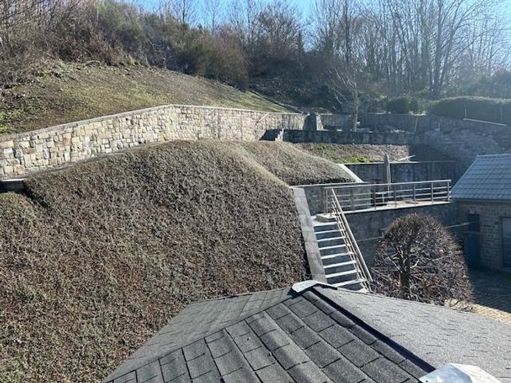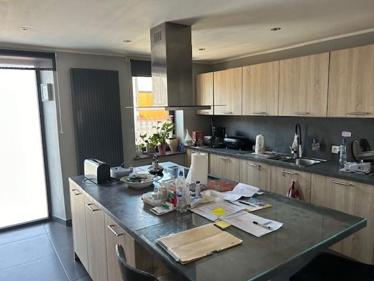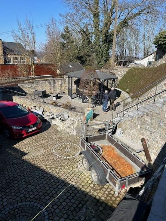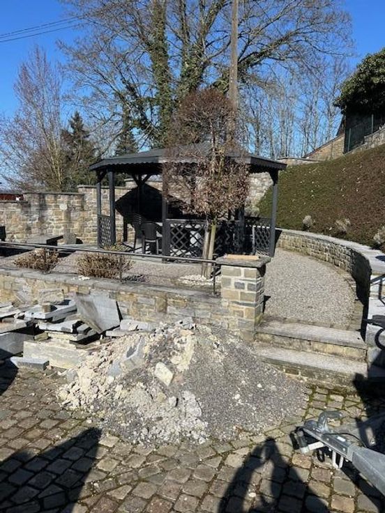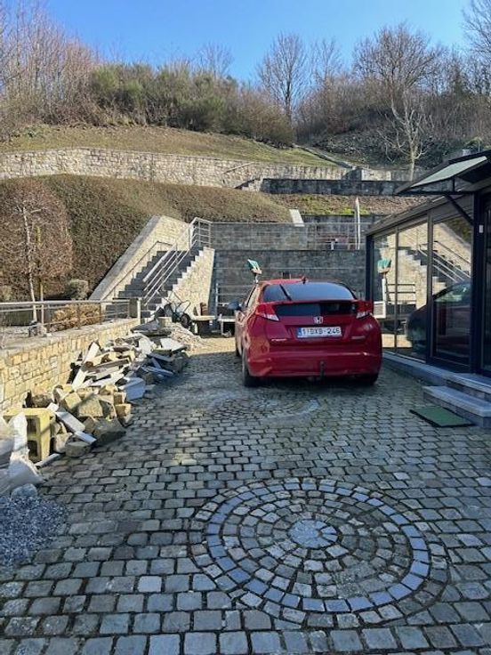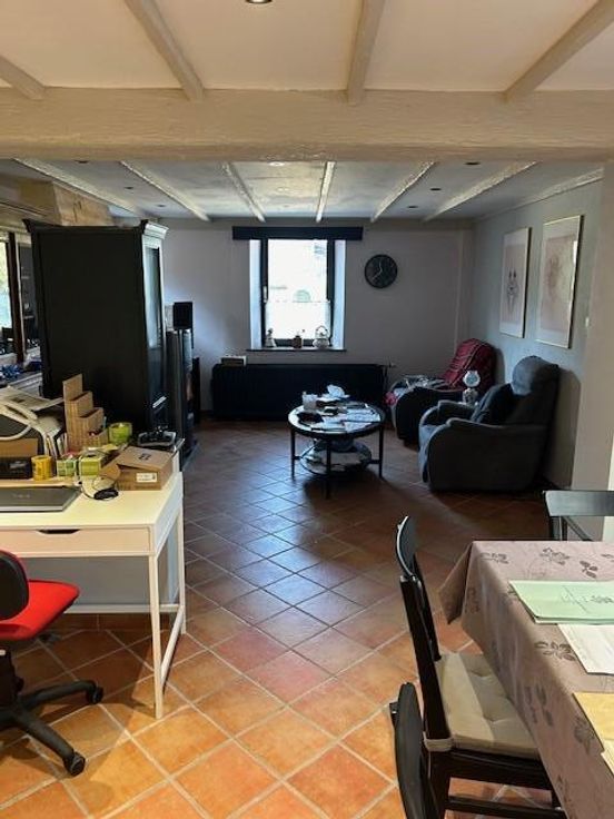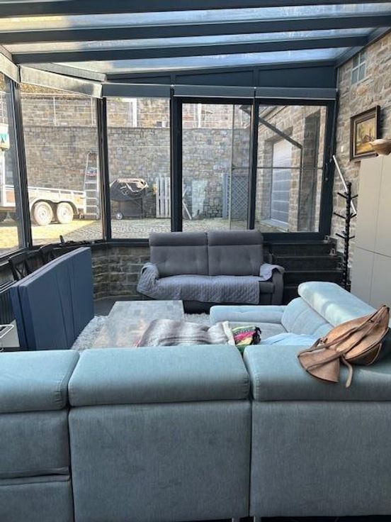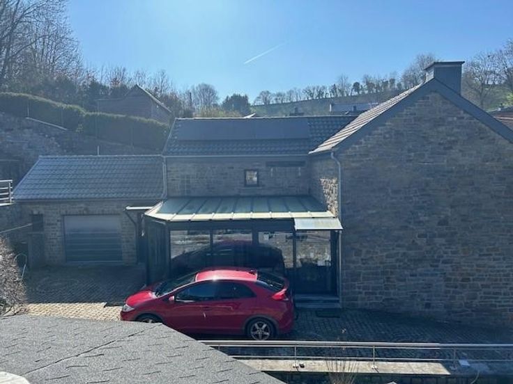 Une maison d’habitation quatre façades en pierres du pays sur les hauteurs de Comblain-au-Pont Adresse : rue du Thier 27 à 4170 Comblain-au-Pont RC : 558€ Superficie : 615 m² Année de construction : entre 1875 et 1899 Cadastre : section I n° 891C5P0000 PEB : D Installation électrique : non conforme COMPOSITION : *rez-de-chaussée -entrée dans une vaste véranda carrelée de 30 m²; -cuisine carrelée et équipée complète avec îlot central, mobilier, taque, hotte, deux éviers, four, frigo, congélateur et lave-vaisselle; -séjour-salle à manger carrelés avec poêle à pellets; -wc avec lavabo et radiateur; -petit hall donnant accès vers le passage latéral de droit, à la cage d’escalier vers l’étage et vers la cave; -garage pour une voiture et coin ran porte d’entrée et une porte sectionnelle électrique + point d’eau (chaude et froide) + coin rangement à l’étage de ce garage. *premier étage: hall de nuit sur parquet, salle de bains avec douche, wc, meuble lavabo/carrelée sol et murs/radiateur sèche serviette et trois chambres sur parquet/plafonds en lambris. *deuxième étage: faux grenier accessible par un escalier escamotable avec trois places qui permettent du rangement. *extérieur: deux passages latéraux, allées d’accès en pavés de rue, cour, jardin en escalier avec trois niveaux, Rotonde avec magnifique tonnelle et terrasse surplombant la maison. COMMODITES -toiture à versants/isolée/en tuiles, -panneaux photovoltaïques, -châssis double vitrage/PVC, -moustiquaires dans les chambres, -