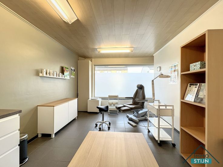 Deze praktijkruimte is gelegen langs de hoofdstraat van Veldegem en maakt deel uit van een gebouw met 3 praktijkruimtes. In deze ruimte werkt er deeltijds een osteopate die 2 of 3 dagen per week haar ruimte wil delen . In de inkomhal hebben we een gemeenschappelijk toilet en een wachtruimtes voor de klanten. Er is ook keuken die gedeeld wordt met de andere personen die een praktijk hebben. Voor de algemene kosten en lasten wordt dient er maandelijks een bedrag van 30 euro te worden betaald.