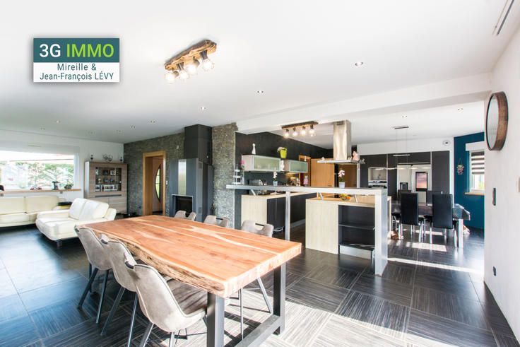 Jean-François LàVY, conseiller en immobilier 3G IMMO, vous propose en exclusivité : A seulement 8 mn de l'accès à la RN 4 et à 15 minutes de Sarrebourg Gare, dans le petit village de Hartzviller, au calme, sur un terrain clos de presque 50 ares, une belle maison individuelle de 2009, de plus de 200 m² habitables, sur 2 niveaux, plus sous-sol, avec garage. Le bien dispose de 5 chambres dont une en rez-de-chaussée. Grande pièce de vie de plus de 50 m², particulièrement lumineuse, donnant sur une spacieuse terrasse en partie couverte et idéalement orientée sud-ouest. La cuisine ouverte de 26 m² est équipée. Une pompe à chaleur alimente un chauffage au sol sur deux niveaux. Grand poêle à bois dans le séjour. Les huisseries sont en PVC double vitrage. Lesous-sol dispose d'une buanderie, d'un atelier et d'un grand garage de 56 m² avec porte motorisée. La fibre est installée. Le bien est relié au tout à l'égout. Une dépendance de 40 m² est bâtie sur le terrain. Pas de travaux à prévoir. Visite sur demande pour tout acquéreur sérieusement motivé et disposant d'un financement validé. Dans le cadre de la loi TRACFIN, selon l'article L.561.5 du Code Monétaire et Financier, la présentation d'une pièce d'identité vous sera demandée, avant la visite. Vous rejoindrez : Sarrebourg en 12 mn Strasbourg en 60 mn, via RN 4 et A4 Nancy en 1 h 10, via RN 4,...,A330 Metz en 1 h 25 via RN 4 et A4 (Honoraires de 4.44% TTC inclus à la charge de l'acquéreur.) Votre agent commercia