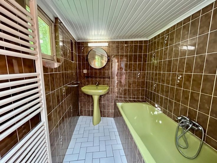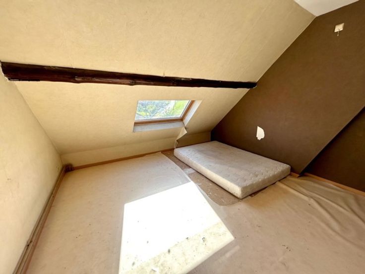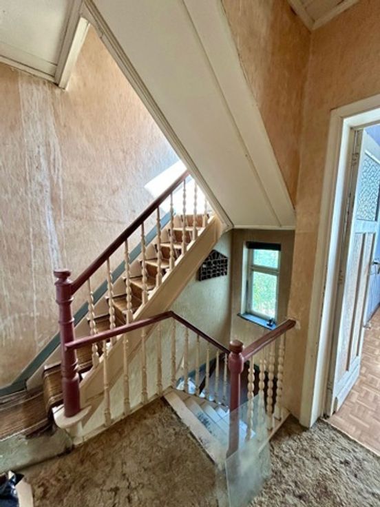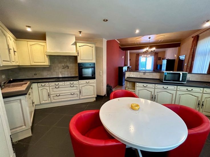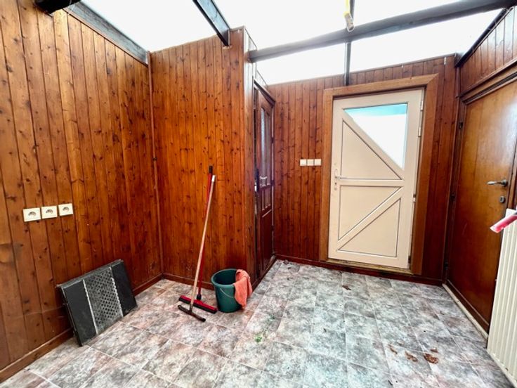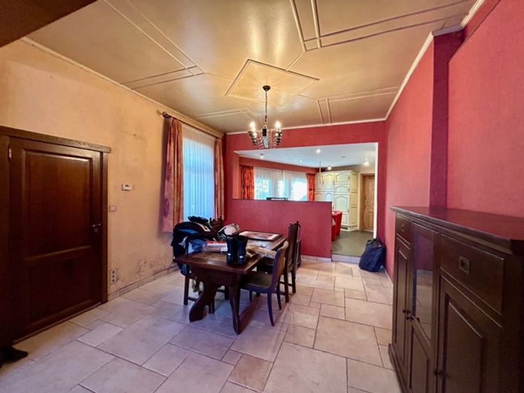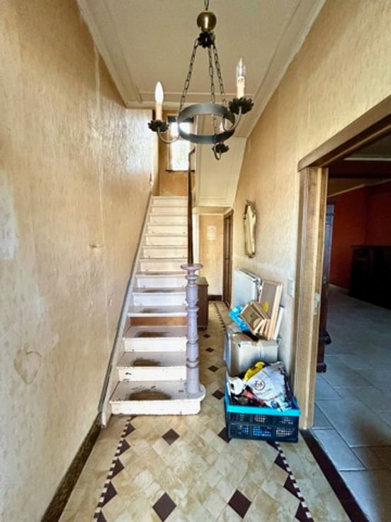 In een rustige en landelijke omgeving te Borchtlombeek, vindt u deze halfopen bebouwing met 4 slaapkamers, 2 badkamers en een zuidoostgerichte tuin op 3a16ca. Ideaal voor gezinnen die op zoek zijn naar een ruime gezinswoning met een grote woonkamer, open keuken en een leuke tuin om in te ontspannen. De karaktervolle gevel, de prachtige trappenhal en de natuurlijke lichtinval geeft de woning een aangename en stijlvolle uitstraling. Echter heeft de woning een grondige modernisatie nodig op basis van elektriciteit, sanitaire systemen, isolatie,…U kan deze woning transformeren naar een huis die voldoet aan alle behoeften van uw gezin en dit volledig op maat van uw eigen budget. De gelijkvloerse indeling van de woning is als volgt: inkomhal met trappenhal, lichtrijke leefruimte met open, ingerichte keuken, apart toilet, badkamer met ligbad en chauffageruimte. Het 1ste verdiep omvat een nachthal, 2 slaapkamers (16-14m²) en een polyvalente ruimte (6m²) die momenteel dient als bureauruimte maar ook kan dienen als dressing. Het 2de verdiep omvat een nachthal met 2 ruime slaapkamers (14-13m²), 2de badkamer (douche en toilet) en bergingszolder. Verder is er een kelder en een aparte garage (25m²) met oprit achteraan de woning aanwezig. Aantrekkelijke ligging! In de nabijheid van belangrijke verbindingswegen, scholen, winkels, openbaar vervoer,…en dit in combinatie van rust en groen. Graag een bezoek? Tel. 054/69.68.67.