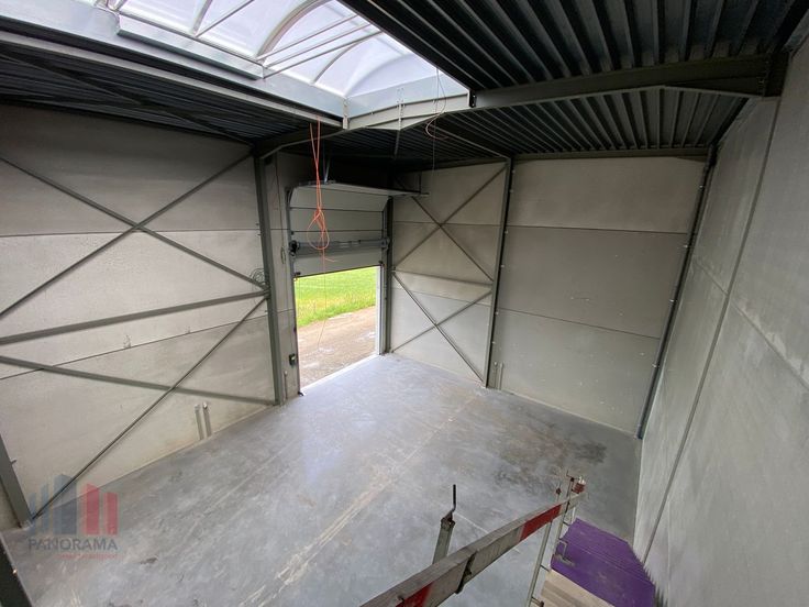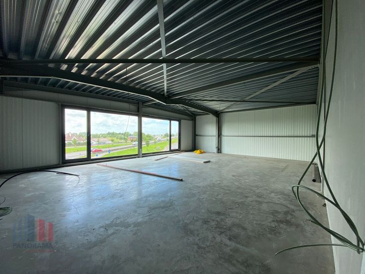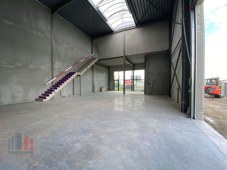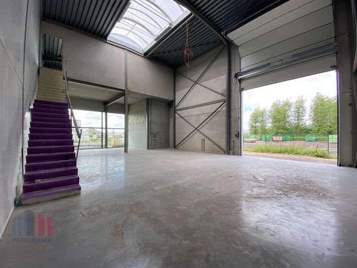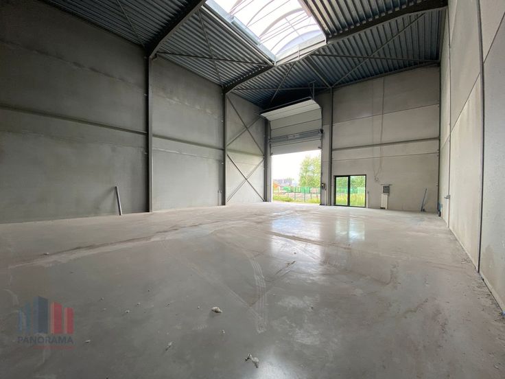 Dit veelzijdige bedrijfsgebouw heeft een totale oppervlakte van 457 m² en biedt verschillende mogelijkheden, zoals een showroom, kantoorruimte en opslag. De geïsoleerde magazijnruimte heeft een oppervlakte van 375 m² en is opgebouwd uit een staalconstructie gecombineerd met betonpanelen. Deze polyvalente ruimte heeft een vrije hoogte van +/- 8 m en is toegankelijk via een automatische sectionale poort (4,50 m x 4,50 m) of een toegangsdeur aan de voorzijde. De loods beschikt over een lichtstraat en grote raampartijen, wat zorgt voor veel visibiliteit. Bovendien is er een extra verdieping van 82 m² die geschikt is voor het inrichten van een kantoor of showroom.