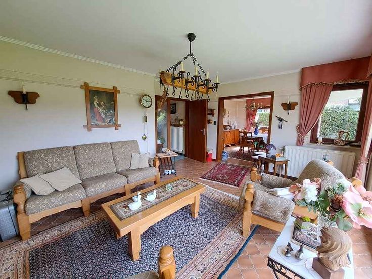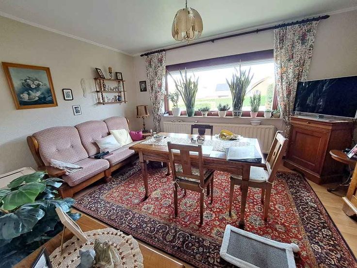 Au rez-de-chaussée ; living, salle à manger, cuisine semi-équipée, 2 chambres à coucher, salle de bain avec WC, WC séparé.