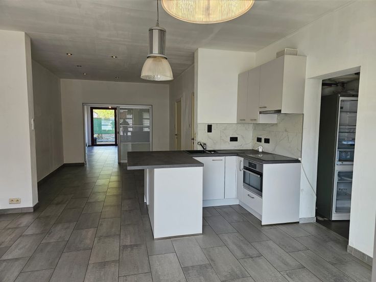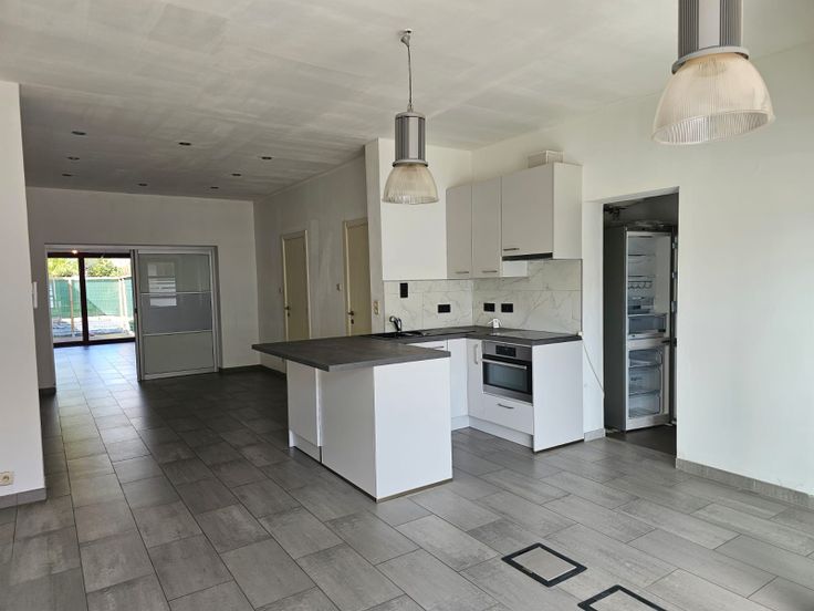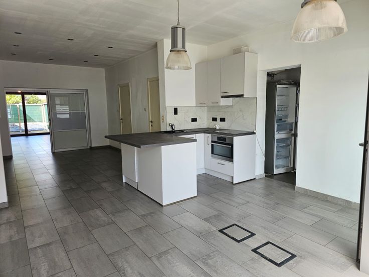 Het gelijkvloers appartement (+/-75m²) omvat een inkomhal, een leefruimte met open, ingerichte keuken, een bergplaats/vestiaire, een badkamer (met douche en lavabo), een slaapkamer, een apart toilet, een wasplaats en koertje/terras. Verwarming door middel van warmtepomp (Daikin), 2 jaar oud.