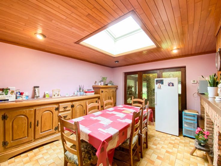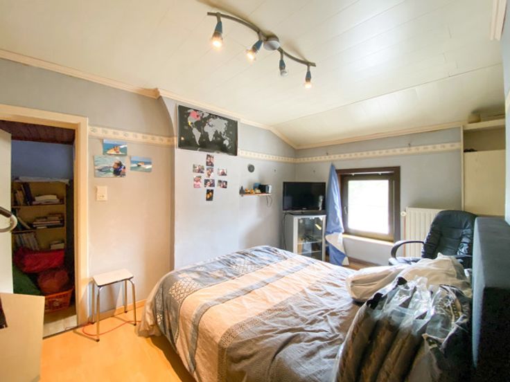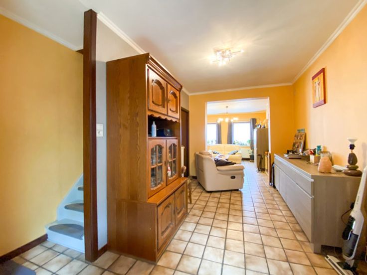 Venez découvrir cette charmante maison située dans un quartier très calme de Velaine sur Sambre ! Elle se compose au rez-de-chaussée d'un hall d'entrée, d'un grand living de 30 m², d'une salle à manger, d'une cuisine équipée, d'une salle de bain, d'une véranda/chaufferie donnant accès à l'extérieur. A l'étage se trouve un hall de nuit, 1 grande chambre avec dressing sur mesure, un espace bureau (pouvant être une chambre) qu'il faut traverser pour accéder à 2 petites chambres de 6 et 8,2 m². Grenier aménageable accessible aussi par le bureau/chambre. A l'extérieur, superbe jardin orienté SUD avec grande remise de 30 m² sol sur 2 niveaux. Installation électrique en bon état (dernière conformité datant de 1995), chauffage central au mazout, châssis bois DV, toiture rénovée en 2001 et isolée sur une partie. RC : 380 € (Bonne nouvelle si les actes passent en 2025, vous bénéficierez du nouveau taux réduit à 3% !!!). Prix souhaité : 189.000 €. Par soucis de transparence vis-à-vis de nos candidats-acquéreurs, nous ne procédons pas a des enchères. Informations et visites au 071/312.312