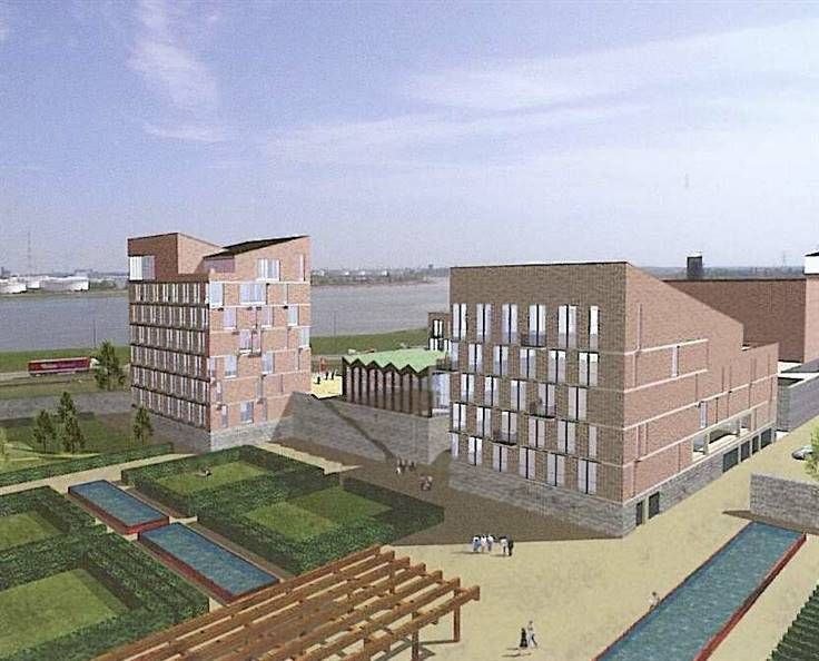 Door de vele glaspartijen, voorzien van zonneschermen, hebben alle kantoren een prachtig zicht op de Schelde.