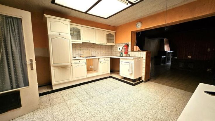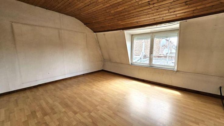 Maison type "Mansarde" à rénover comprenant : * au rez-de-chaussée : couloir, salon avant, cuisine semi équipée (Four, taques, hotte et frigo) avec espace repas, salle de bain (WC et baignoire), petite cour avec terrasse en bois; * au 1er étage : hall de nuit desservant deux chambres spacieuses; * au 2ième étage : grenier de rangement; Maison à conforter équipée de châssis en double et simple vitrage, convecteur au Mazout (avec Cuve 1.000L aérienne) Visites : clé disponible en l'étude - réservation préalable souhaitée au 056/34.22.60 réf. étude : 2024-0167/003
