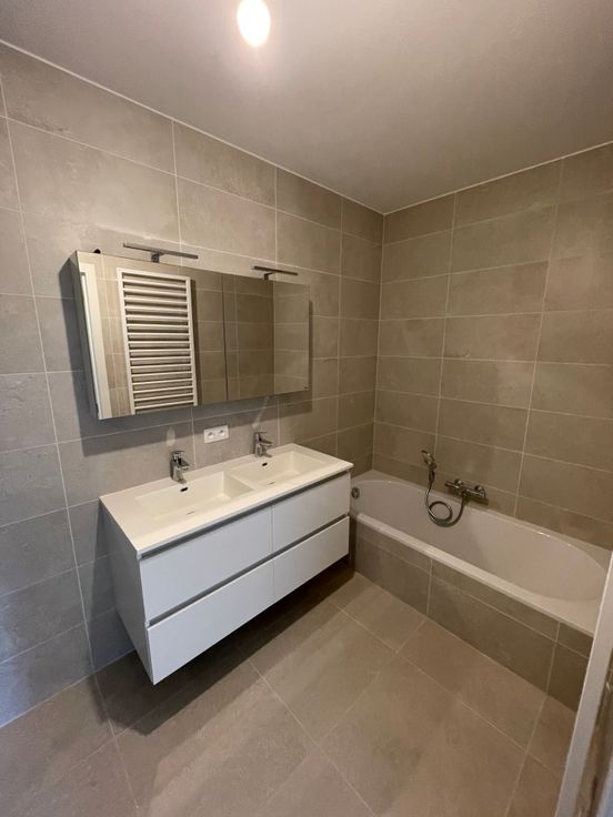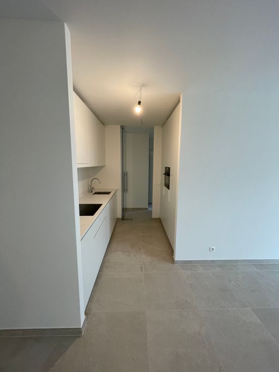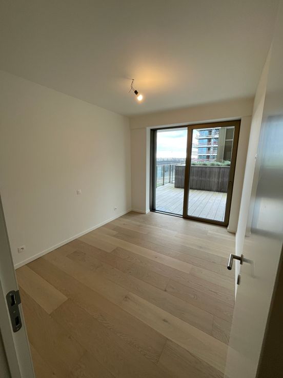Dit nieuwbouwappartement gelegen op de 4e verdieping van SKy Tower One omvat: een inkomhall, leefruimte, keuken, ruim terras, 2 slaapkamers, badkamer met bad en douche, toilet en bergruimte. Mogelijkheid tot aankopen van een garage.