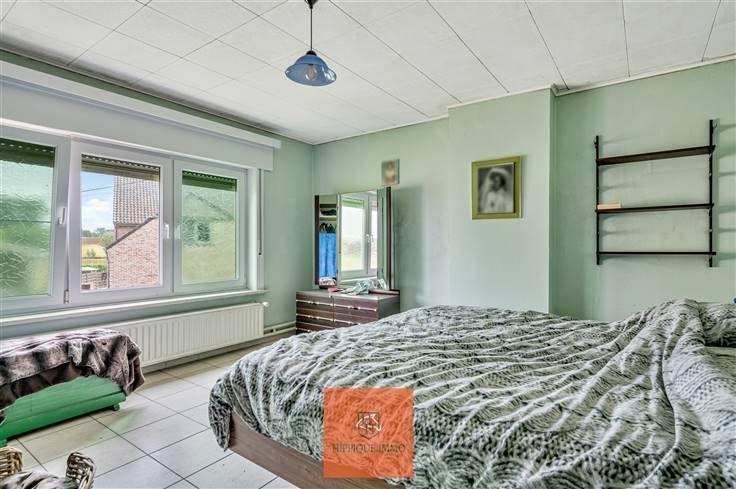De mogelijkheid bestaat ook om een nieuwbouwwoning van 1.000m3 op te richten op dit perceel, mits het aanvragen en verkrijgen van een vergunning. De huidige woning bestaat uit een inkomhal, een keuken en een ruime woonkamer. Op de eerste verdieping vinden we 3 ruime slaapkamers en een badkamer. Aanpalend aan de woning is een stalgebouw dat mogelijkheden biedt en naast de woning bevindt zich nog een aparte garage met voldoende opslagruimte.