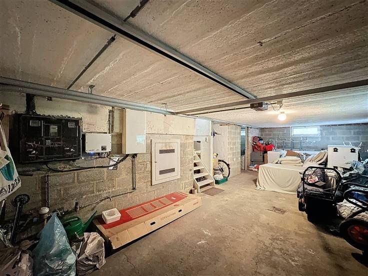 Le hall de nuit dessert trois chambres, une salle de bain et un débarras pratique. La villa est également équipée d'un grand garage avec porte électrique, offrant sécurité et commodité. Une buanderie bien pensée complète les espaces de service et un grenier permet l'optimisation du rangement.