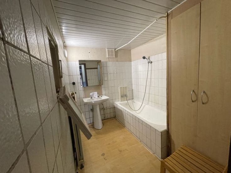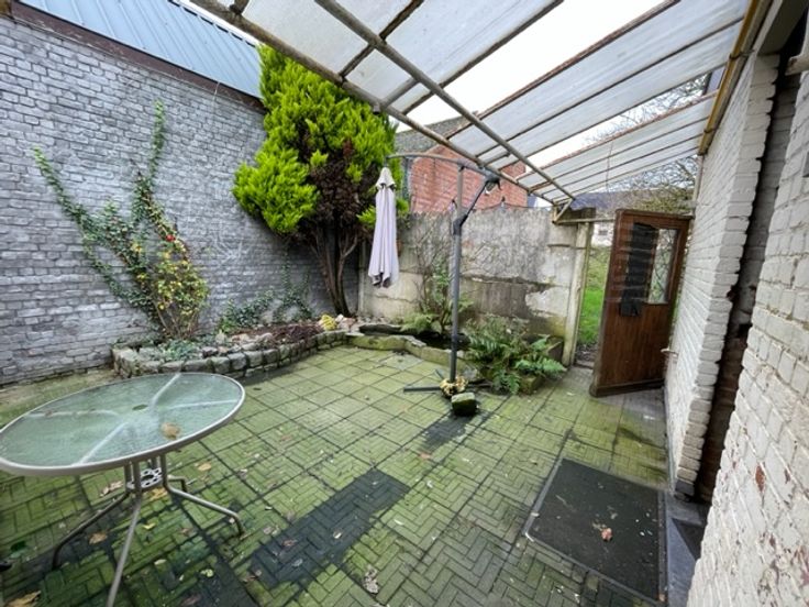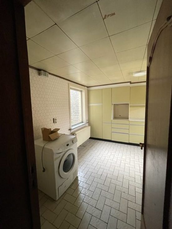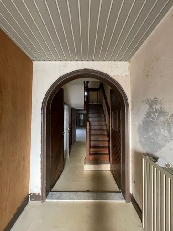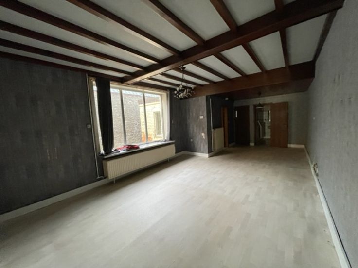 Ruime gezinswoning (te renoveren) bestaande uit: inkom, bureau, living/eetplaats, keuken, badkamer, 4 slaapkamers, zolder, terras, garage en een ruime tuin.