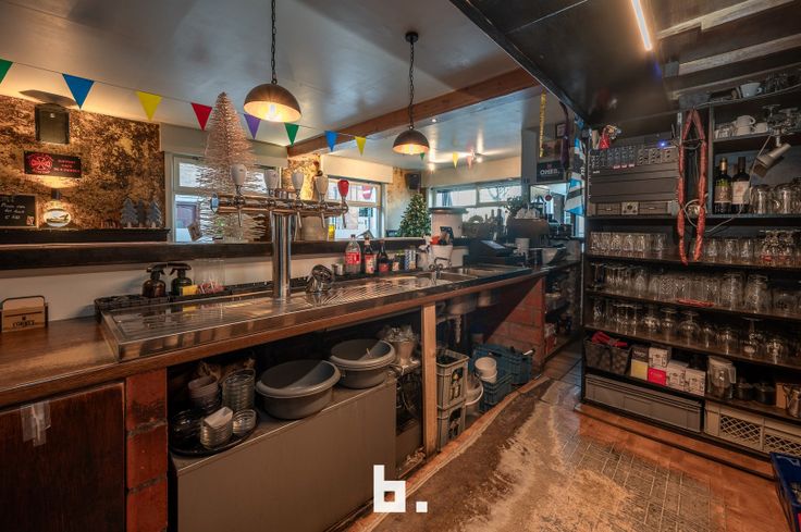 - Handelsruimte: Horecazaak met bar en gelagzaal (120m²), bureel (13m²), opbergruimte (10m²) en frituur (35m² - aparte ingang) met keukengedeelte. Alsook is er een sanitair gedeelte.