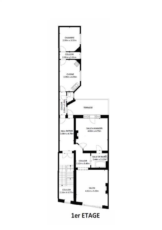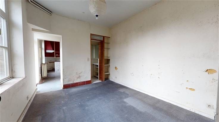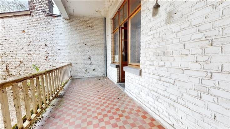 1er étage (Superficie totale +/-121 m²) : 1 appartement à rénover avec 1 chambre et terrasse. Libre d'occupation.