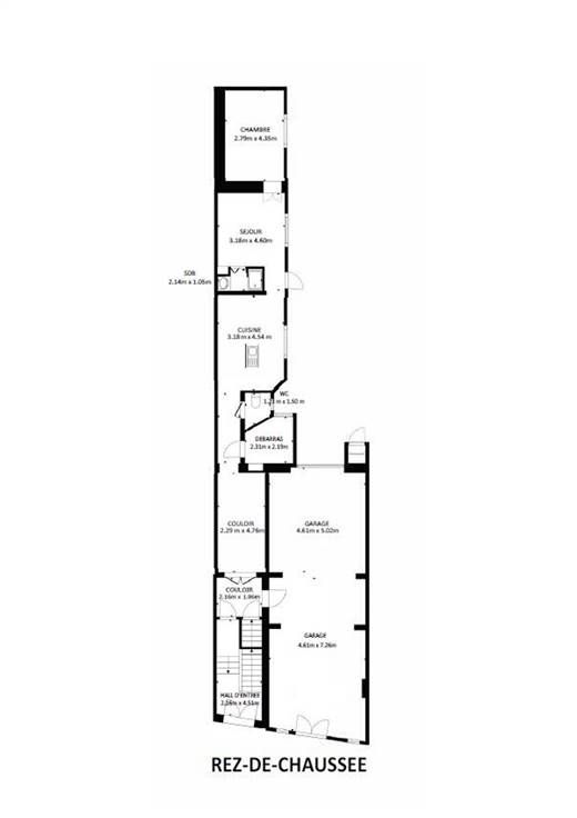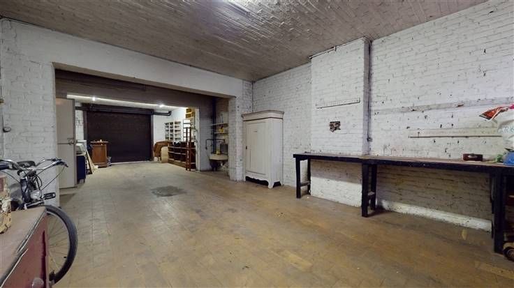 Rez-de-chaussée (Superficie totale +/-130 m²) : 1 appartement à rénover avec 1 chambre et jardin. Libre d'occupation - 1 grand garage de +/-57 m².