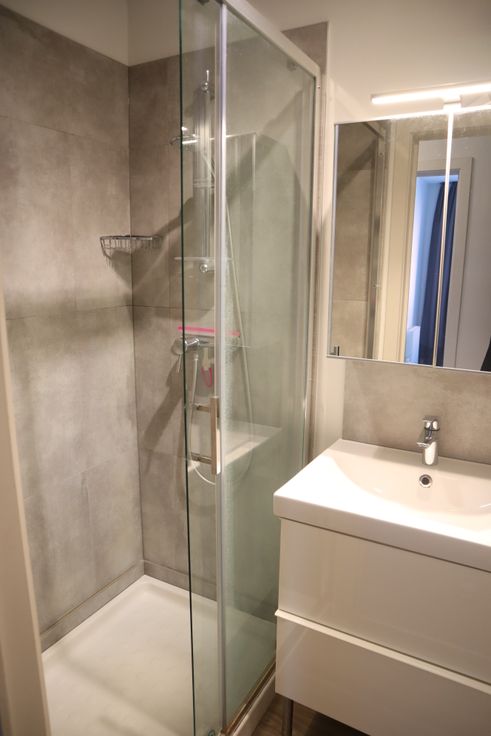 L'appartement est composé d'un séjour, d'une cuisine équipée, d'une salle de bains avec douche et toilette ainsi que de deux chambres.