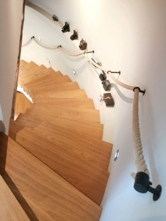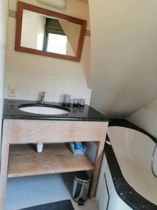 A l'étage un hall, le salon avec feu au bois, un bureau/dressing, un espace ouvert . A chaque étage, un escalier mène à une chambre équipée d'un sanitaire. Le bien propose trois chambres offrant chacune une atmosphère particulière avec une vue exceptionnelle. Une douche, un bain et un second WC sont à disposition.