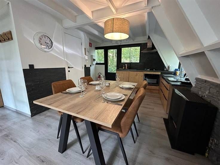 VERKOCHT ! MCA Immobilier biedt u deze bungalow nr. 23 op het park SUNCLASS DURBUY. Rustig gelegen, mooi in de natuur, bosrijke omgeving! Het chalet is als volgt ingedeeld Op de begane grond vindt u een grote, lichte open woonkamer bestaande uit een zitkamer, een eetkamer, een keuken een badkamer en een apart wc. Boven zijn 2 slaapkamers en op de overloop een extra slaapplaats waardoor in totaal 5 slaapplaatsen. Buiten geniet je van een groot zonnig terras! Heb je vragen over het park/ de bungalow neem contact per e-mail via: info@immomca.be. .