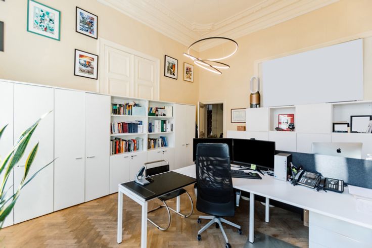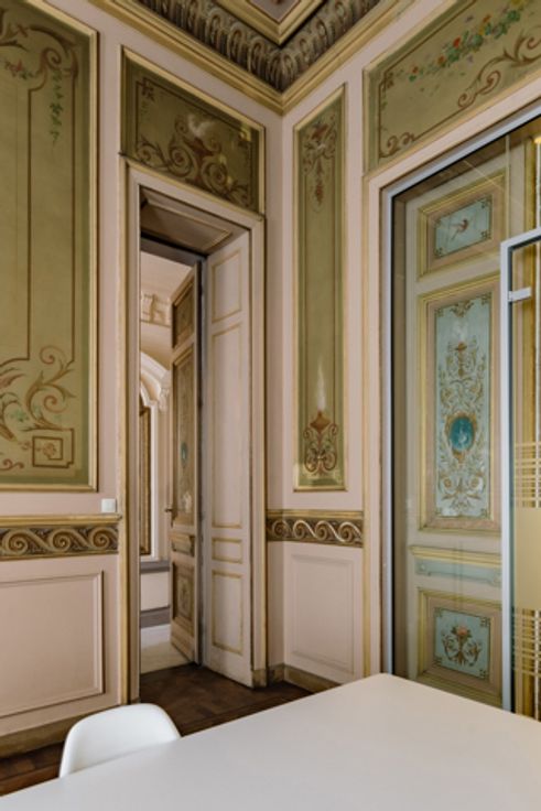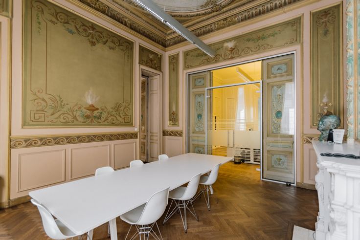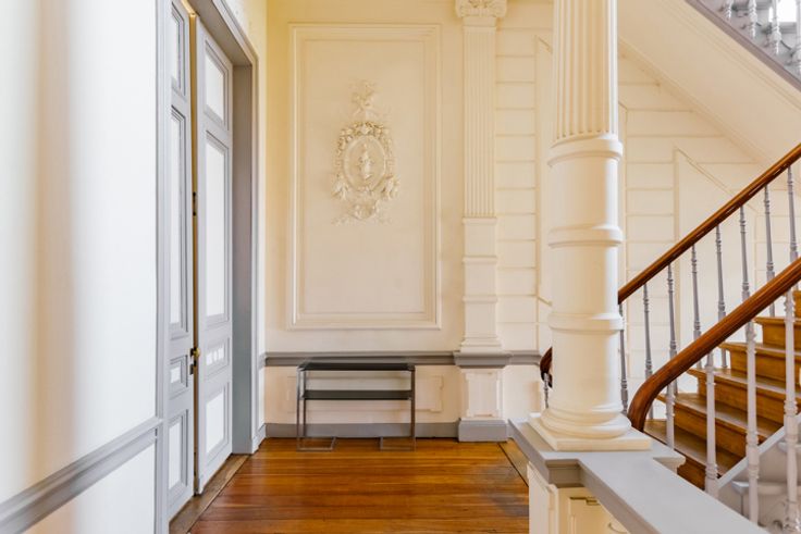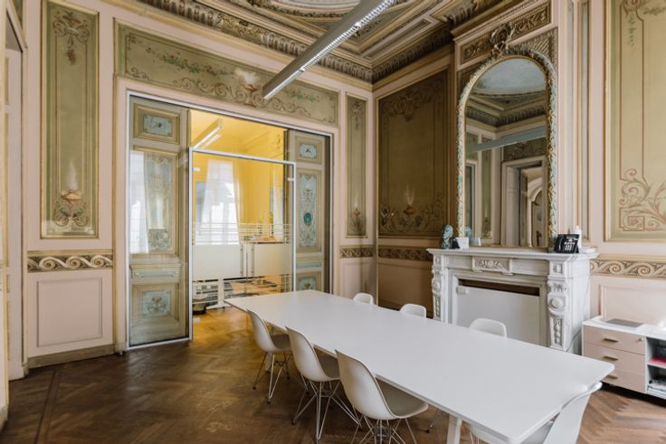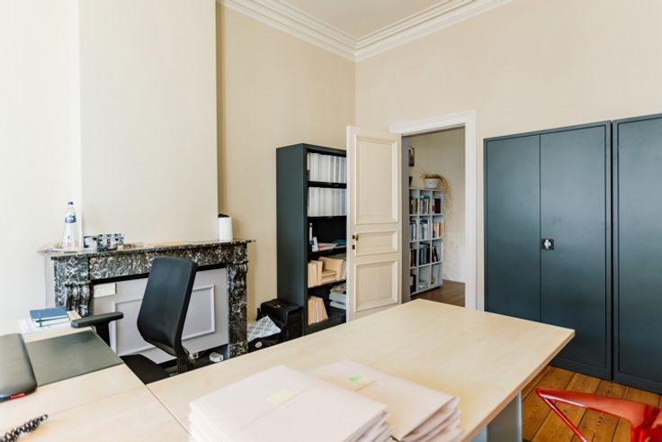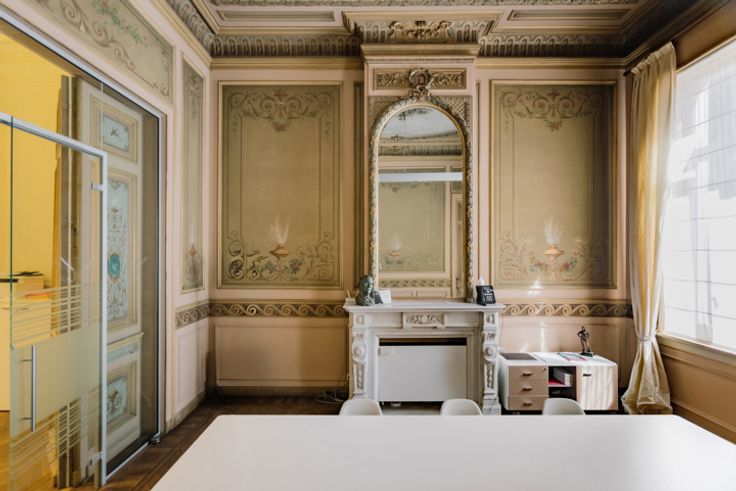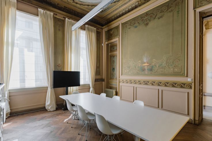 Het pand uit 1880 van architect Theodoor Charlier werd ontworpen als een woonhuis, maar is nu ingericht als kantoor. De monumentale inkomhal representeert meteen de sfeer die in het hele gebouw aanwezig is.