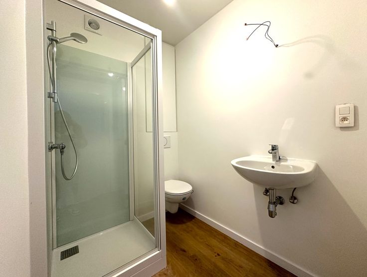 - Badkamer met toilet, douche en wastafel