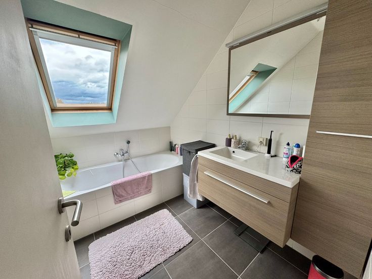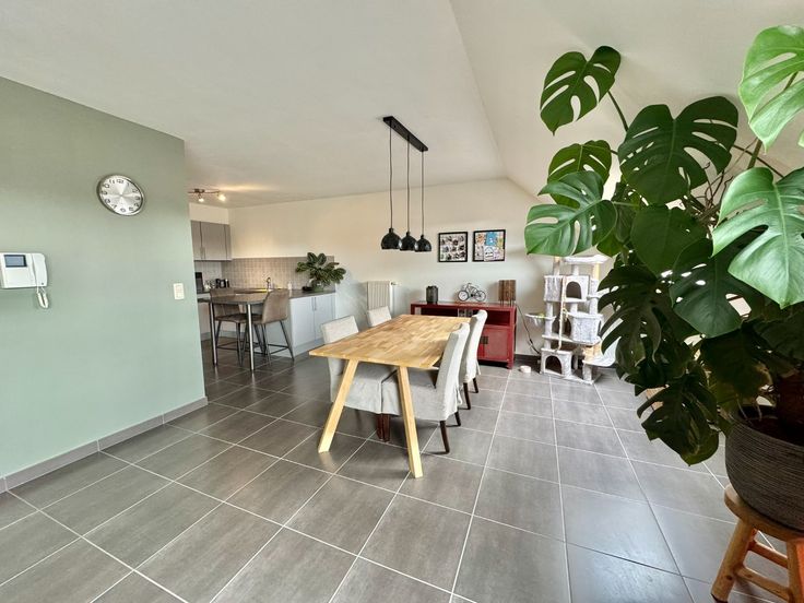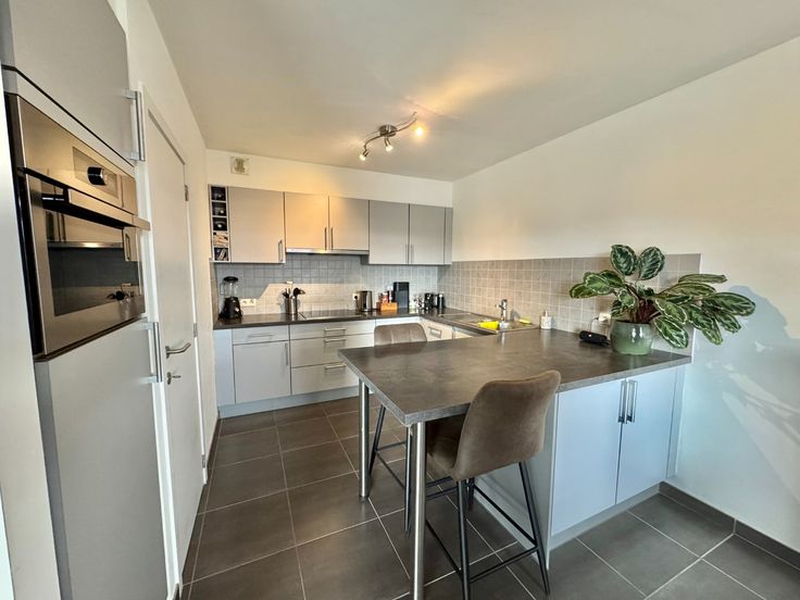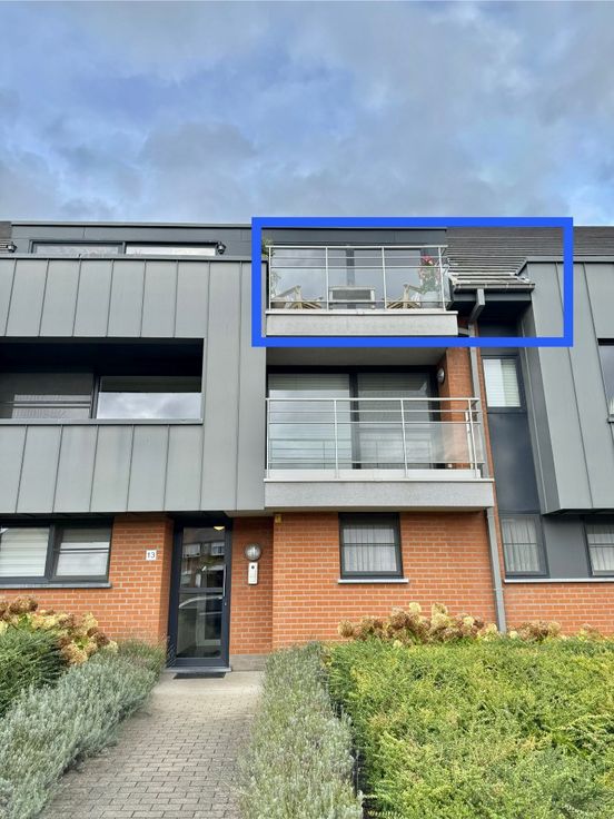 Appartement op 2e verdieping van recent gebouw (lift aanwezig) bestaande uit living, ingerichte keuken (vaatwas/combi-oven/kookplaat), bergruimte, 2 slaapkamers, badkamer, apart toilet en terras.