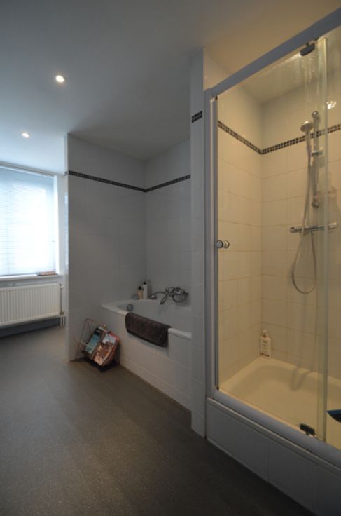 Deze leuke instapklare woning bestaat uit een inkom, leefruimte, ingerichte keuken, 2 ruime slaapkamers, badkamer met bad, douche, lavabo, toilet, berging, apart toilet, berging en terras.