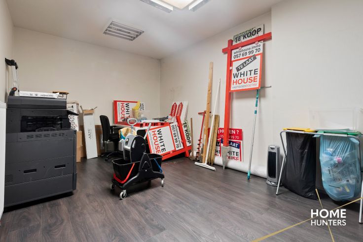 Verder zijn er twee aparte bureaus die veel flexibiliteit bieden voor diverse werk- en overlegmomenten. Daarnaast beschikt de ruimte over een volledig ingerichte vergaderzaal, wat ideaal is voor belangrijke besprekingen of klantontvangsten in een rustige en professionele omgeving. Om het comfort compleet te maken, is er ook een gezellige eetruimte aanwezig, waar personeel kan ontspannen tijdens lunchpauzes. Met twee aparte toiletten wordt praktisch gemak gegarandeerd.