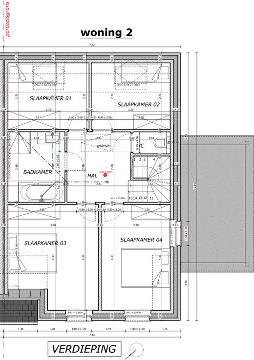 Op de bovenverdieping heb je drie grote slaapkamers, ideaal voor elk gezinslid om zijn of haar eigen plekje te creëren. De moderne badkamer is voorzien van zowel een ligbad als een inloopdouche, en er is ook een apart toilet op deze verdieping.