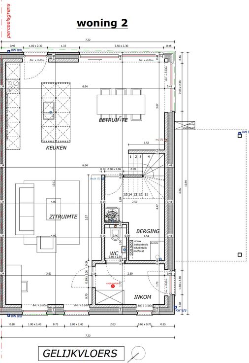 Bij binnenkomst word je verwelkomd in een ruime en lichte open leefruimte, ideaal om samen met je gezin of vrienden te genieten. De keuken is volledig geïnstalleerd en perfect voor zowel snelle maaltijden als gezellige diners. Aanpalend vind je een handige berging en een apart gastentoilet.
