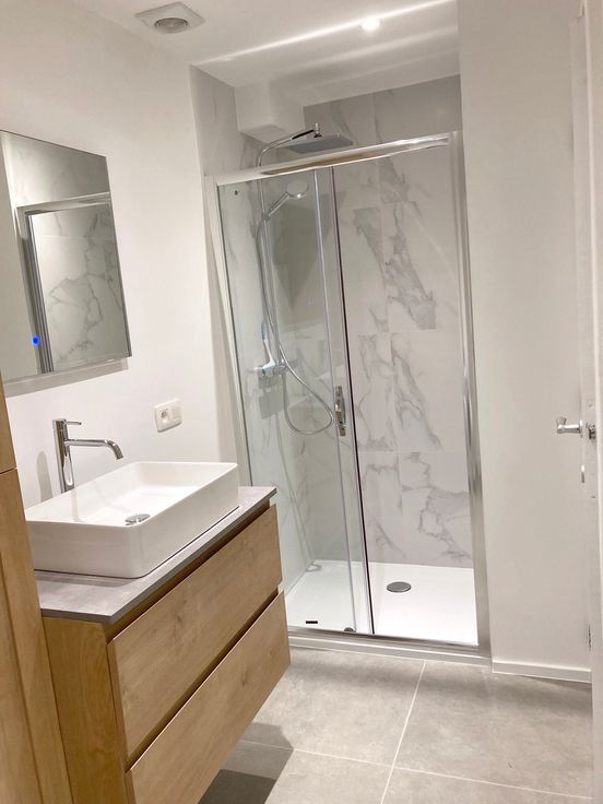 Nouvelle salle de douche avec machine lave linge disponible