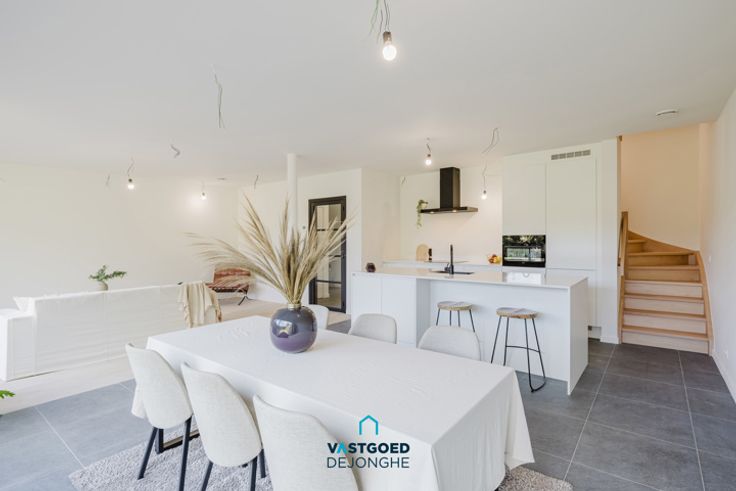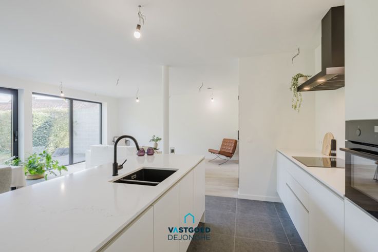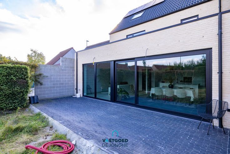 Op wandel- en fietsafstand van scholen, winkels, station, ... staat deze Bijna Energie Neutrale nieuwbouwwoning. Het huis heeft de volgende indeling: inkomhal met apart gastentoilet, ruime lichtrijke leefruimte met volledig ingerichte open keuken. Op de eerste verdieping zijn er 2 ruime slaapkamers, een badkamer met douche, ligbad, dubbele lavabo en een toilet. Op de tweede verdieping is een derde grote slaapkamer en een dakterras. Indien de akte nog voor 2025 kan worden verleden is hier nog de mogelijkheid aan te kopen aan 6%btw! Grote troeven: goede locatie, lichtrijk, nieuwbouw, zonnepanelen, warmtepomp,... Voor meer informatie of een bezoek kan u contact opnemen met Sander Dejonghe via sander@vastgoeddejonghe.be Alle dossierstukken en virtual tour kan u downloaden op www.vastgoeddejonghe.be