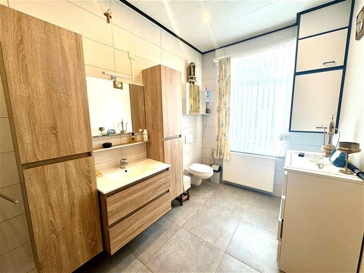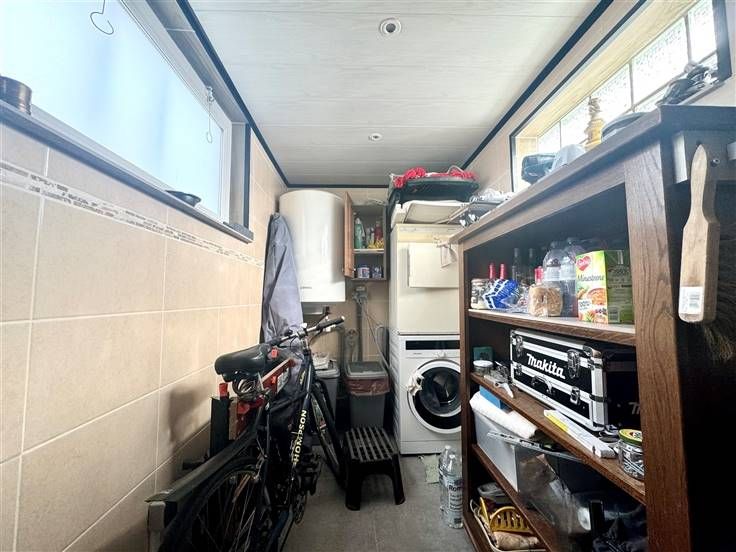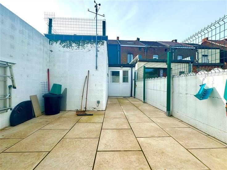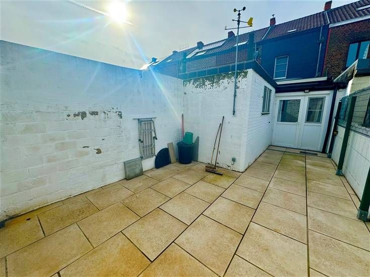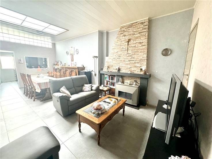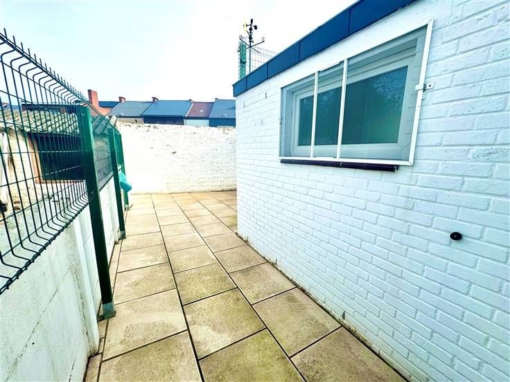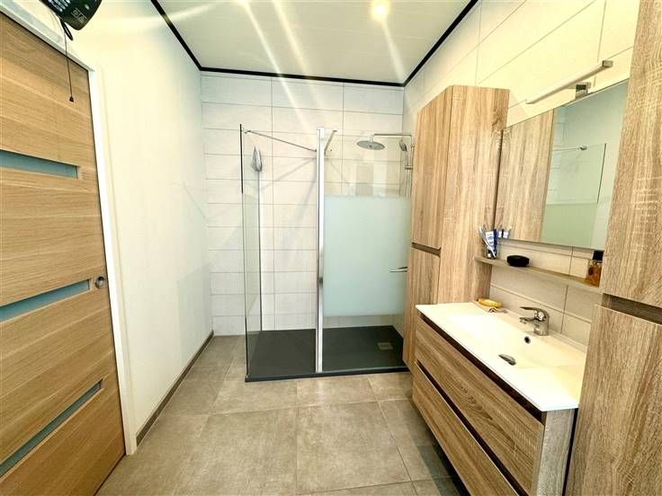 Au rez-de-chaussée; un hall d'entrée, une salle de douche, un living ( salon, salle à manger ), une cuisine équipée donnant accès à la cour/terrasse et une buanderie.