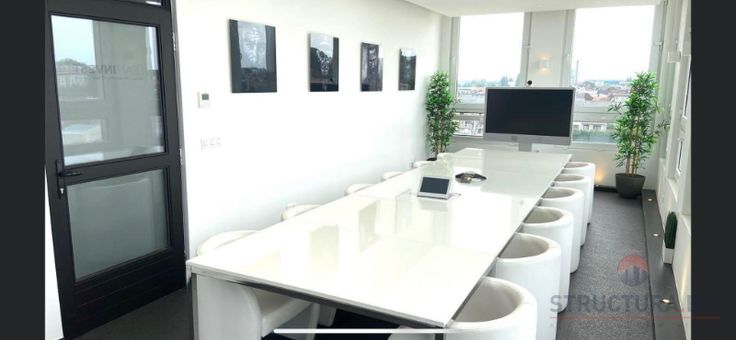 Het pand is momenteel verhuurd en heeft 9 kantoren en een grote vergaderruimte. Hier is een specificatie van de ruimte: