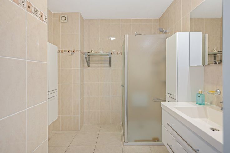 Het appartement beschikt over 2 slaapkamers (13m²/ 10m²) en een prachtige badkamer. In de badkamer vindt u een enkele lavabomeubel, spiegelkast en inloopdouche.