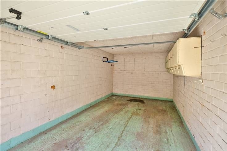 Gelegen in een rustige autoluwe (doodlopende) straat op een steenworp van het centrum van Kontich, openbaar vervoer en winkels, vinden we deze achtergelegen garagebox.