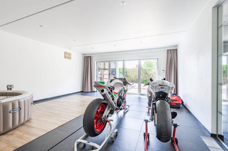 In 2014 stond de loods van 240m² er. Hierin heeft de verkoper toen een tijdelijk huis gemaakt, zie de foto's vanaf de 2de keuken, met 4 kamers voor in te wonen, ter afwachting van het huis die ernaast ging gebouwd worden. De loods vanbinnen is meer dan 4 m hoog en heeft een professionele afwerking. De woning van 2017 heeft de volgende indeling: inkom, leefruimte, zitruimte, grote luxe keuken, garage, berging, bureel, slaapkamer en dressing, badkamer, toilet,... Op het gelijkvloers is er ook een commerciële ruimte. Weet dat hier al een overdekt zwembad met jetstream ligt, die nog een verdere afwerking vraagt. Boven zijn er drie kamers, een dressing, badkamer en zoveel meer. De eigendom heeft in totaal 4 douches en toiletten. Epc B, conforme elektrische keuring, cv op gas (vloerverwarming), regenwaterput van 20.000 l ( loods) en 10.000 l (huis), alarm, rustige ligging,... Volgens het RUP is deze loods gelegen in zone 3, gebied bestemd voor handel, horeca, KMO en opslag en daarbij horende voorzieningen noodzakelijk voor het functioneren van deze bestemmingen. In principe zou een schrijnwerker hier wel kunnen. Wenst u een rondleiding ter plaatse: maggie@vastgoednorman.be of 0479402404.